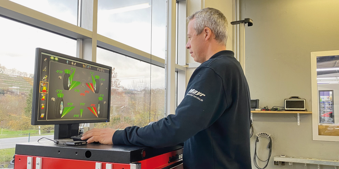 Zu den geschulten Fachkräften gehört auch eine moderne Werkstattausstattung. Schadenbedingtes, auf Kamera und Laser basierendes Vermessen und Kalibrieren der Assistenzsysteme wie Radar, Totwinkel, Spurhalteassistenzen oder auch Fahrwerkvermessung nach jeder Unfallreparatur gehören zwingend dazu. „Selbst der einfache Austausch der Frontscheibe macht heute eine umfangreiche Kalibrierung erforderlich“, ergänzt Jochen Mayr.