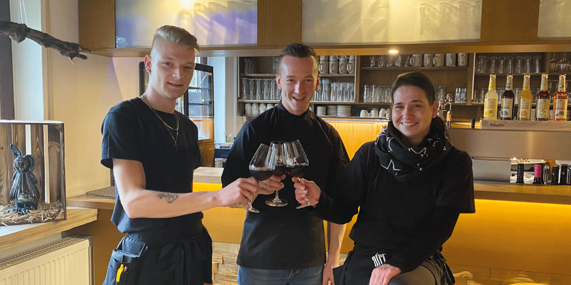 „Dazu servieren wir vorwiegend regionale Getränke, wie Weine der Lauffener Weingärtner, von den Weingütern Eberbach Schäfer oder Wörthmann, sowie aus Heilbronn, Biere der Herbsthäuser Brauerei aus Bad Mergentheim und Liköre der Edelbrennerei Schiefer und selbstverständlich auch alkoholfreie Erfrischungsgetränke“, so Sebastian Renner.