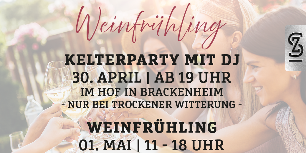 Es kann wieder gefeiert werden. Start ist am Samstag, 30. April, um 19 Uhr im Weinkeller Brackenheim. Das Team in Brackenheim freut sich, dass die beliebte Kelterparty wieder stattfinden kann. Alle sind eingeladen, um im Hof des Weinkellers Brackenheim zu coolen DJ Sounds von Dj SeVen zu feiern. Natürlich mit tollen Weinen und Sekten sowie leckeren Snacks. Der Eintritt ist frei. Bitte beachten: Die Veranstaltung findet nur im Außenbereich und bei trockener Witterung statt.