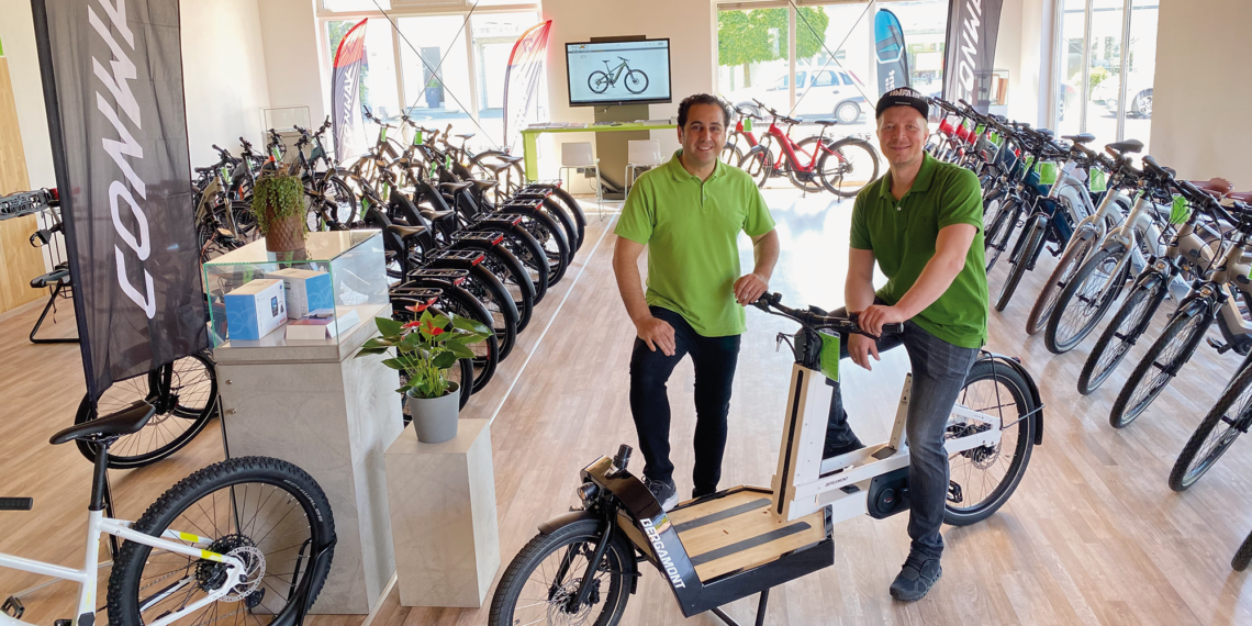 Dass Umwelt und Nachhaltigkeit großgeschrieben werden, sieht  man neben dem Verkauf von Fahrrädern auch beim Sortiment der E-Bikes und der Ausstattung.