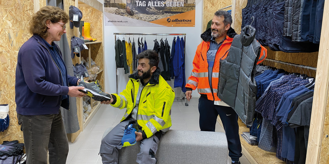 „Wir haben für alle Gewerke das passende Outfit auf Lager und beraten Sie auf Basis unserer langjährigen Erfahrung individuell“, so die engagierte Fachfrau. So sind neben wärmenden Mützen und schützenden Helmen unter anderem auch robuste Arbeitsjacken für Gipser, Stuckateure, Maler, Kraftfahrer, Mitarbeiter auf Bauhöfen, Waldarbeiter oder Garten- und Landschaftsgärtner im Angebot. Diese passen nicht nur durch auffällige Farben für gute Außenwahrnehmung perfekt, sondern sind mit herausnehmbaren Futtern, abnehmbaren Ärmeln und hoher Wassersäule bei bester Atmungsaktivität flexibel an die Jahreszeiten und an das jeweilige Wetter anpassbar.