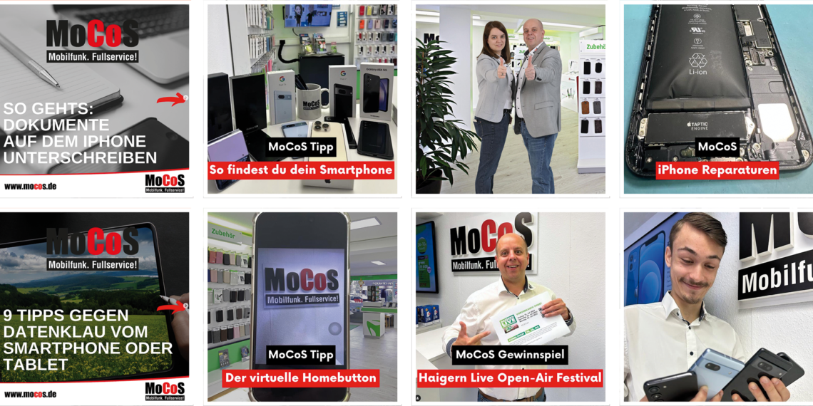 „Deshalb beraten, schulen und informieren wir auf verschiedensten Kanälen wie eben auch unter facebook.com/mocos.lauffen oder instagram.com/mocos.mobilfunk. Dabei wird auf plakative Werbung verzichtet, vielmehr werden aktuelle Trends und Funktionen aufgegriffen und erläutert, Fragen von Nutzern beantwortet und auch mal ein Gewinnspiel veranstaltet.“
