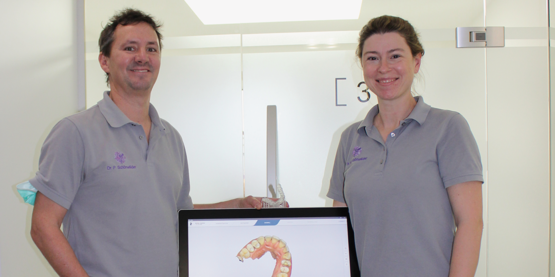 Da Kieferknirschen und Kieferpressen seit geraumer Zeit massiv zugenommen haben und damit auch der Bedarf an entsprechenden Therapieschienen, hat der Patient den Vorteil eines sehr geringen Zeitaufwandes, da die Schienen notfalls innerhalb von ein paar Stunden gleich direkt in der Praxis hergestellt und eingesetzt werden können“, beschreibt Dr. Philipp Schönwälder den Vorteil der Patienten. Dieses Verfahren ist auch wesentlich genauer als die Fertigung bei einem Zahntechniker anhand eines Gipsmodells. Denn die Philosophie von Dr. Nadine und Dr. Philipp Schönwälder ist SCHMERZfrei und immer zum Wohle der Patienten.
