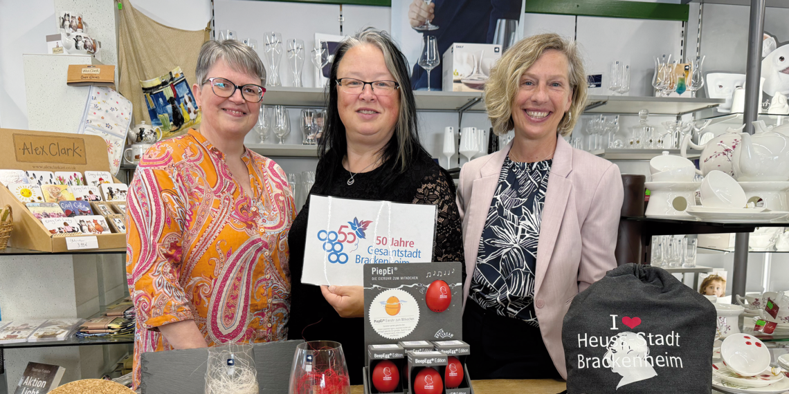 „Schon jetzt und solange der Vorrat reicht, können Sie unsere Theodor-Heuss-Geschenkartikel anlässlich des Brackenheimer Jubiläums bei uns kaufen“, sagt Kirsten Scheid, seit 1. Januar 2024 neue Inhaberin der Atempause. So zum Beispiel das Theodor-Heuss-PiepEi zum Eierkochen: „Legen Sie das PiepEi mit Ihren Frühstückseiern in den Kochtopf. Es signalisiert Ihnen in drei verschiedenen Melodien, wann Ihre Eier weich-, medium- oder hartgekocht sind“, erklärt die ehemalige Inhaberin Regine Brahner. Weitere Jubiläumsartikel sind das Vesper-Brettle, Schieferplatten, Tassen, Untersetzer, Sportbeutel und Jute-Taschen.