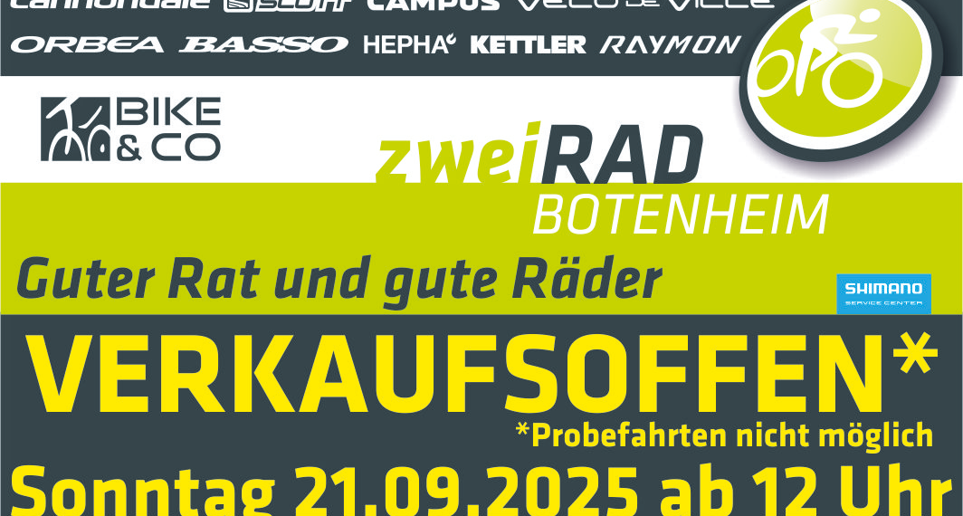 Der Countdown läuft. Am 21.9.2025 startet um 12 Uhr der verkaufsoffene Sonntag auf der Gewerbeschau des Gewerbevereins Brackenheim im Botenheimer Industriegebiet. „Schauen Sie gerne bei uns vorbei, und erleben Sie das komplette Sortiment an E-Bikes, E-MTBs, MTBs, Rennrädern und Gravelbikes“, lädt Peter Schmid von zweiRAD Botenheim das radaffine Publikum ein.